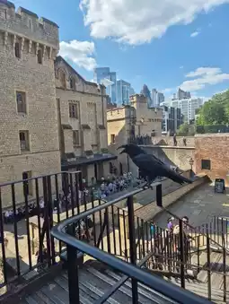 The Tower of London is a medieval castle. You can see armor, weapons, prayer rooms, and prisons used in the Middle Ages. The most popular attraction is the Crown Jewels, where the royal jewels and crown are kept. You'll often spot ravens as you tour the Tower of London. Legend has it that if ravens disappear, the royal family will fall. The Tower of London also offers a great photo opportunity of Tower Bridge from the ramparts.