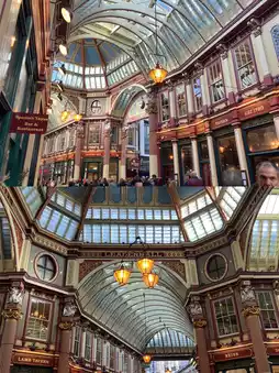 Leadenhall Market – Filming location for Harry Potter's Diagon Alley, featuring medieval buildings and arched roofs