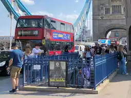 After crossing the bridge, you can easily visit the Tower of London, a medieval fortress that served as a royal palace and prison, and is now home to the Crown Jewels. On the opposite side, you'll see the modern skyscrapers of the City of London, highlighting the city's unique blend of history and modernity.