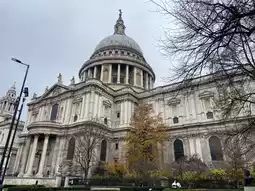 St. Paul's Cathedral in London is a masterpiece of Baroque architecture and a representative landmark of England. From the exterior, its massive dome, intricate carvings, columns, and statues create a majestic atmosphere. The view from the surrounding square, blending with the London cityscape, is breathtakingly beautiful. On a clear day, the contrast between the dome, the surrounding buildings, and the sky is even more striking, making it a perfect photo opportunity.