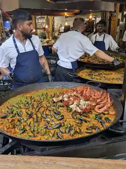 Borough Market, a historic food market in the heart of London, is a must-visit for foodies. The lively atmosphere is filled with local restaurants and fresh farm-to-table produce, including fragrant baked cheeses, homemade breads, fresh seafood, and a wide selection of international street food. A highlight is the food stalls, where freshly prepared food is both delicious and photogenic. Enjoy a relaxing stroll through the warm, friendly atmosphere. Perfect for both tourists and locals, Borough Market is conveniently located near London Bridge Station, making it one of London's most charming markets.