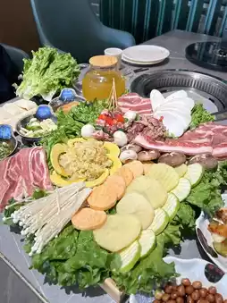 They say you must try the barbecue in Northeast China! We ordered a barbecue set for lunch at the hotel after the hot spring on the second day. The set included a wide variety of meats, so you can try them all at once and feel satisfied! The key is that it's not synthetic meat! I have to complain about the large portions in Northeast China. Two girls couldn't finish it!
