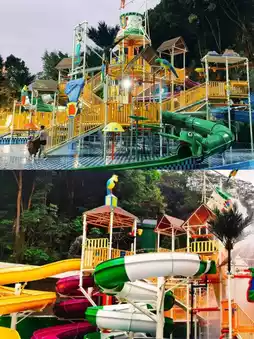 1โฃ There is a Mayan water park at the entrance of the hot spring area, which is very suitable for children to play in.