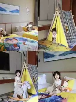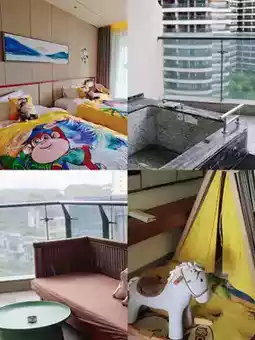 ✅Upon opening the door, the room full of little🐒decor instantly caught👦's attention. Even the rocking horse and tent were specially designed for kids, plus a private soaking pool – every detail showed the hotel's thoughtfulness.