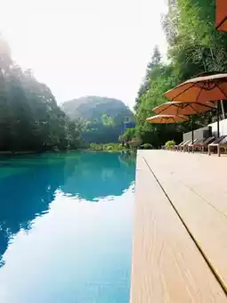 The garden pool is filled with natural mountain spring water, making it incredibly gentle on the skin 💦. Relax by the pool with a fizzy drink 🥤—it’s the ultimate indulgence!