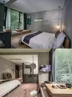 With large floor-to-ceiling windows offering panoramic views of bamboo forests and mountains, mornings here start with gentle sunlight waking you up☀️—it's pure bliss.