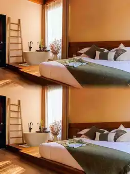 ▪️ Highly recommend the independent ecological courtyards! Rooms like Qunqing and Ningzhi come with private hot spring pools. Soaking in the warm spring, looking up at the bamboo sea and down at the stone path, and stargazing at night—privacy is perfect~