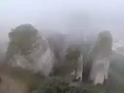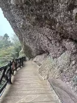 The visitor center opens at 7 am. I arrived at the visitor center at around 7:30 am, bought a ticket, and started climbing the mountain. During the climb, the mountain was shrouded in mist, and people were in the scenery, appearing and disappearing, full of fairy spirit. The terrain of Nanwudang Mountain is not steep. Walking along the steps along the mountain, the scenery changes with each step, with strange rocks and majestic beauty. Two parallel peaks appear in front of you, with Wudang Peak to the south and General Peak to the north. The two peaks are like two giant elephants flying in the sky, known as "Double Elephants in the Sky." It takes about 40 minutes to reach the top of the mountain along the stone steps.