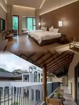 Jinglu Lanshan is a renovated Weiwus, with blue bricks, gray tiles, and upturned eaves all perfectly preserved. Every carved detail tells the story of Hakka architectural wisdom. The oil-paper umbrella lamps hanging in the lobby create a great atmosphere, blending New Chinese style with wabi-sabi. The minimalist style of linen bedding and solid wood furniture makes every photo a masterpiece of Chinese style!