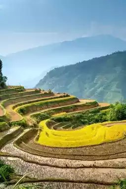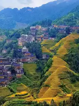 —— “When the autumn breeze brushes over layers of golden rice, the terraces surge like waves—