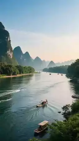 “The river is like a green silk belt, the mountains like jade hairpins,” the beauty of the Li River is truly well-deserved! You can take a cruise or bamboo raft to tour the Li River, enjoying famous sights like Nine Horse Fresco Hill and Yellow Cloth Reflection. Highly recommend the section from Xingping Ancient Town to Nine Horse Fresco Hill—breathtaking scenery that feels like traveling inside a painting.