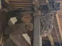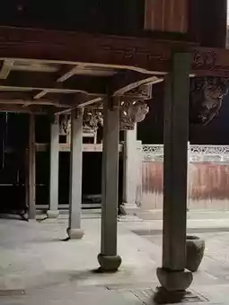 Originally located in Maye Village, Zhanjia Town, Longyou County, the Ma Clan Ancestral Hall was first built in the 16th year of the Chongzhen reign of the Ming Dynasty (1643). Covering an area of 358 square meters, the hall resembles a courtyard-style layout, with the front section using larger timbers than the rear. The golden pillars have a diameter of 50 cm, giving the structure a grand appearance and a well-proportioned layout. Inside, there's a unique stage known as the "two-sided stage." One end faces Qu County, while the other faces the ancestral tablets towards Longyou, leading to the saying, "Standing in Qu County, watching a Longyou play." Mr. Yu Shaosong personally inscribed a couplet on the stage's pillars: "The former welcomes, the latter attends; this side finishes singing, that side takes the stage." Another couplet, recorded in the Ma Family Genealogy and inscribed on the front wall of the stage, reads: "The hall is full of idlers, arms folded, watching the play without knowing the hardship of performing; everything must have an end, starting from the beginning, getting on stage is easy, getting off is hard." The hall is a key cultural relic protection site in Zhejiang Province.
