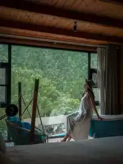 Twilight is as dark as ink, soaking the valley of Zhuxi Valley. The mountain breeze carries the fragrance of grass and trees into the bar, as if the wilderness is slightly intoxicated at this moment. Order a local special cocktail; the amber liquid sways in the glass, reflecting the stars gradually lighting up outside the window, like a miniature autumn night star river. Sitting by the window, before your eyes is a velvet-like night sky studded with stars, the outline of distant mountains faintly visible under the moonlight, like a watercolor painting blurred with ink. The music flows softly like water, and the bartender’s laughter carries the freshness of the wilderness, recommending a drink called "Autumn Mountain Evening Whisper." Take a sip, the mountain breeze brushes past your hair, bringing the unique coolness of the mountains. The city's noise shatters into stardust at this moment, quietly dissipating with the ripples in the glass. Here, there is no neon restlessness, only the natural light and sound of heaven— the rustling of bamboo leaves, the murmuring of a distant stream, the occasional bird call passing over the treetops, weaving together a nocturne of the wilderness. In this slight intoxication, the heart also becomes a breeze in the mountains, gently swaying in the embrace of the autumn night.