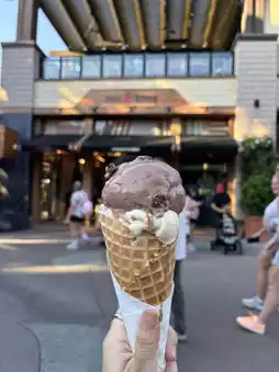 I wanted the soy sauce flavored soba noodles at Disney, but they were sour and I gave up halfway through...lol. The shrimp on top was the best. 🦐 The ice cream is consistently delicious.