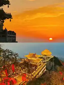 - At an altitude of 2,217 meters, five golden halls are built along the mountainside. When surrounded by sea of clouds, it resembles a "heavenly palace," and the golden sunrise adds to its breathtaking beauty.