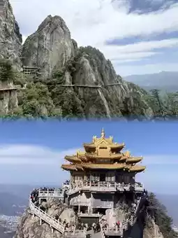 1. Golden Summit Taoist Temple Complex: The iconic landmark of Laojun Mountain. The golden temples shine brilliantly in sunlight and appear like fairyland when shrouded in mist. The panoramic mountain view from Zijin Summit truly embodies the poetic phrase "all other peaks look dwarfed".