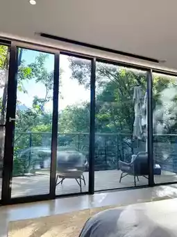 🏞 The guesthouse is very close to the Laojun Mountain Scenic Area, at an altitude of over 1,000 meters, offering a pleasant summer experience—absolutely amazing! The scenic room I chose this time hit the spot—pull back the bed curtain and there’s a floor-to-ceiling window, with healing greenery outside, making every breath feel lighter. The room is also very well-equipped with smart devices, clean and comfortable to stay in. This stay was truly fantastic! 👏 Outside the window, there’s a viewing platform where you can sit and daydream while enjoying the mountain view—it’s like bringing a “natural oxygen bar” into everyday life.