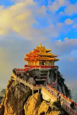 The Golden Summit buildings are Ming and Qing dynasty style, with golden roofs that look stunning in sunlight