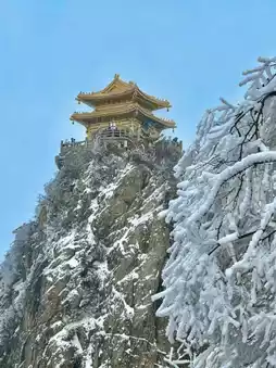 As the main peak of the Funiu Mountains, Laojun Mountain stands at 2,217 meters. After snow, it is a model fairyland: the Golden Summit Taoist temple complex shines golden against the white snow, the ten-mile ice screen of icicles and rime looks like natural artwork, and from Mazong Ridge you can see the continuous snowy mountains and sea of clouds together. Every spot is worth capturing.