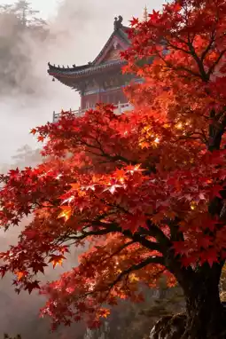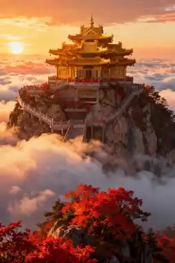 - Pentagonal Maple Forest — Early autumn’s tender leaves glow like rosy clouds, turning into a mix of orange and gold in late autumn. The crystal-clear palmate leaves complement the flying eaves of the Taoist temples, creating picturesque scenes perfect for immortal fantasy shots.