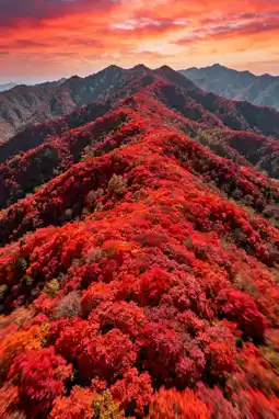 - Chinese Sumac Fire Sea — As the "main force" of red leaves, they transition from bright yellow to blazing red. The continuous canopy looks like thousands of torches burning in the valley, resembling waves of red flames from afar.