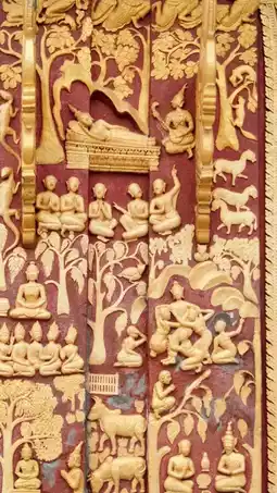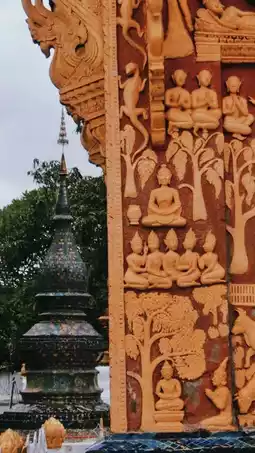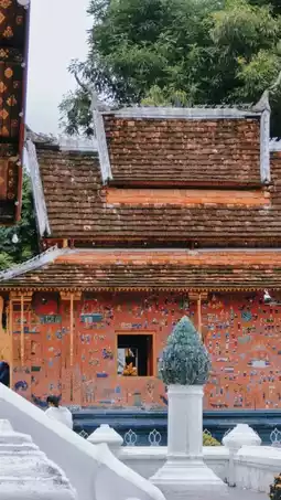 Wat Xieng Thong is renowned as the most beautiful temple in Luang Prabang. The entrance fee is 20,000 Kip. Built in 1560, its brick-red walls are adorned with exquisite murals inlaid with gemstones, making it truly unique. The entire structure encapsulates the ancient charm of Luang Prabang. The most famous feature of the temple is the "Tree of Life" mural.