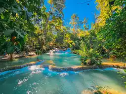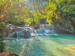Located near Luang Prabang in Laos, Tad Sae Waterfall features a beautiful emerald green pool.