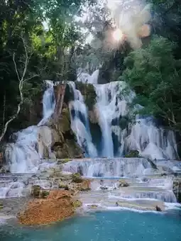 Day 5️⃣: Go to Luang Prabang and visit the historic Royal Palace -> Visit the magnificent Kuang Si Waterfall and experience the grandeur and beauty of nature.