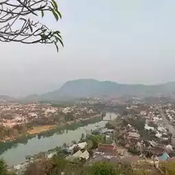 The climb offers moments of reflection and serenity, with nature's whispers guiding your way. Upon reaching the summit, you are rewarded with a breathtaking panorama of the majestic Mekong River and the charming cityscape of Luang Prabang, including its picturesque French colonial streets. The view from the top is nothing short of magical, as the setting sun casts a golden glow over the landscape.
