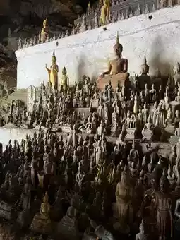 🪷 Stop by Pak Ou Caves, where you can see thousands of small or bigger Buddha statues and learn about the flooding and cultural beliefs.