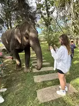 🐘 Feed elephants at Manifa Elephant Camp! We also had a buffet lunch at the restaurant with a view of the Mekong River before we hopped onto the boat!