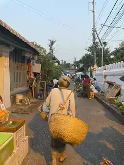 4. Offer sticky rice to monks and visit the morning market to eat local food.