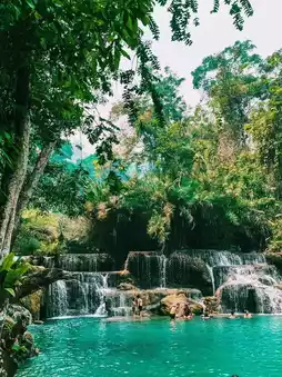 Famous attractions in Luang Prabang, Laos: Kuang Si Waterfall, suitable for checking in and taking photos📸