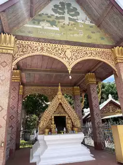 I visited Wat Sensoukharam, a peaceful temple built in 1718. Its red walls and golden details are beautiful, and the calm atmosphere made it a perfect spot to relax.