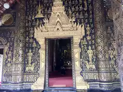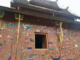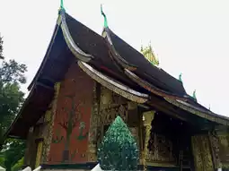 What impressed us was the back wall of the chapel with a pattern of golden trees, which is a beautiful and graceful glass decoration. It is a true Luang Prabang art.