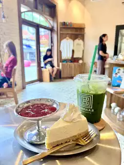 Formula.b Cafe in Laos is a new cafe located in the heart of Luang Prabang, near the walking street. It's easy to get to and offers parking right in front of the cafe. The cafe has two floors with beautiful lighting, making it a perfect spot for taking stunning photos. You can relax and enjoy the charming views of Luang Prabang while sipping on their delicious Pure Matcha, which is truly delightful. In fact, every menu item is tasty, especially their durian cake, which is currently very popular. Drink prices start at 35,000 Kip, and desserts are around 60,000 Kip, making it a worthwhile experience to try.