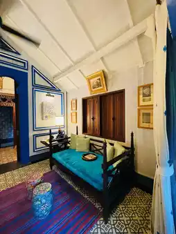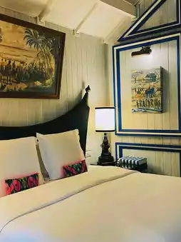 Geometry is always Bill's language. From the geometric collage of private pools in villas to the mosaic patterns in bathrooms, the framed geometric shapes on walls, and the arched lines of Middle Eastern-style screens dividing bedrooms and living spaces—these elements create an Arabian Nights atmosphere, transitioning from form to spirit.