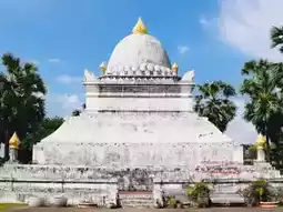 🌿Phra That Mak Mo has a unique shape, an inverted circle resembling a "halved watermelon", which can only be seen here. It was built by Queen Phan Tin Chiang, the wife of King Visoun.