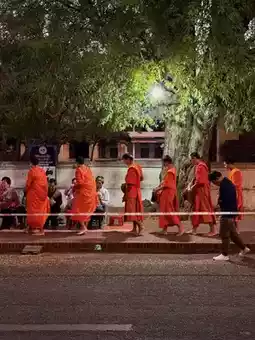 This is a must-do activity when you’re in Luang Prabang. You’ll need to wake up around 5-6 AM to line up for the alms-giving ceremony. Typically, sticky rice and snacks are offered to the monks. You don’t need to prepare anything in advance as there are vendors near the temples selling these items, making it very convenient. For photography enthusiasts, dressing up nicely for the occasion is a great idea.