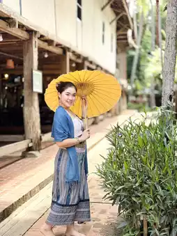 Rent Lao traditional outfits in Luang Prabang for beautiful photos, starting at 100,000-150,000 kip.