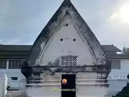 The front and side walls are decorated with gilded wood carvings that tell stories from the life of the Buddha