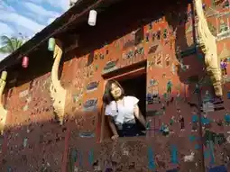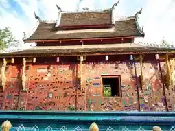 🛕The Red Sim, also known as the Reclining Buddha Hall, or the Red Temple, is a must-see for all visitors. This small Sim is located next to the Ubosot (ordination hall) or the Great Buddha Hall. Its distinctive exterior walls are painted rose pink or brick red, complemented by beautiful murals. Peeking out the small windows creates a truly captivating and beautiful sight.
