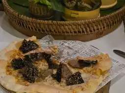 The restaurant's menu focuses on fusion cuisine, combining European and local Lao dishes, creating unique and interesting flavors. A popular and highly recommended dish is the pizza, which comes in a variety of flavors and is a must-try.