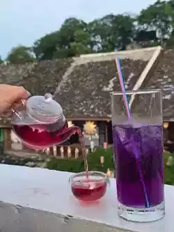 The café offers a variety of organic Lao teas, such as white tea and green tea, along with cocktails crafted using local Lao ingredients.