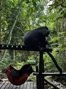 Before starting the short hiking trail up to the falls, you’ll pass a free rescue sanctuary for Asiatic black bears. It’s small but meaningful, and you can see the bears relaxing or playing—it adds an extra layer of interest before reaching the main attraction.