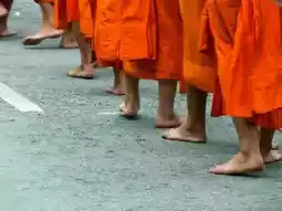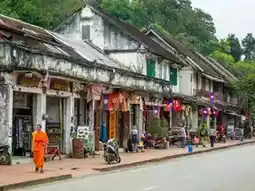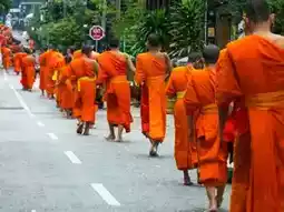 In the early morning, witness the almsgiving ceremony, where monks walk through the streets collecting offerings — a practice deeply rooted in Lao culture.
