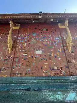 The back wall of the temple features the famous "Ton Thong" (Golden Tree), its striking gold against a deep red background. It's simply breathtaking. 🌟