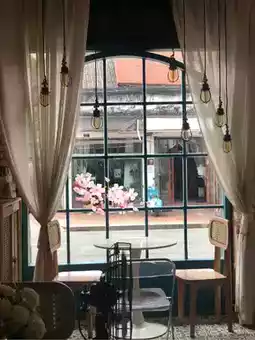 The shop has two floors. The ground floor sells souvenirs and other items, while the upper floor is a beautifully decorated cafe with views of the city's main street, as it's practically in the heart of the old town.
