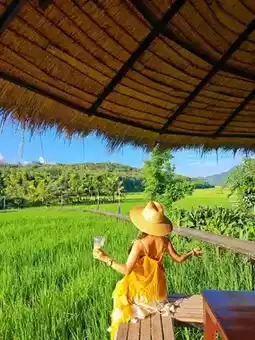 ▪️ Rice Field Cafe: You can stop by on your way back, drink Laotian iced coffee by the lush green rice fields, full of pastoral charm 🌾