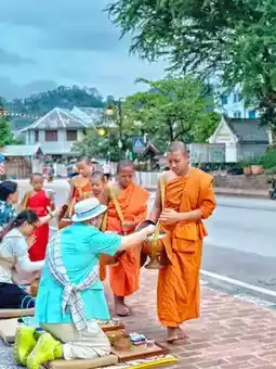 ▪️ Morning Alms Giving: Arrive near the entrance of Sisavangvong Road at 5:30 AM, buy some sticky rice and snacks to participate in the ceremony. The procession of monks in orange robes is incredibly moving (remember to maintain a solemn demeanor).